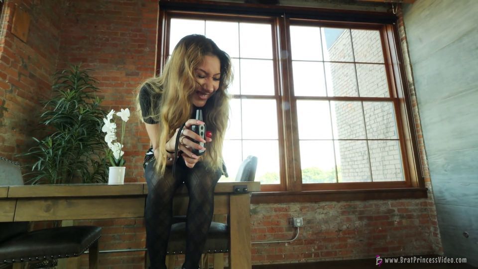 When she doesn’t get what she wants this is what happens. Shocks to the balls. And she doesn’t care if it hurts. She gifts him with her spit and makes him crawl back and forth to clean it up with his tongue. But if he isn’t fast enough then she will push the button! She loves being mean to her stupid stepbrother. She tells him to warn her stepdad because he is next!
