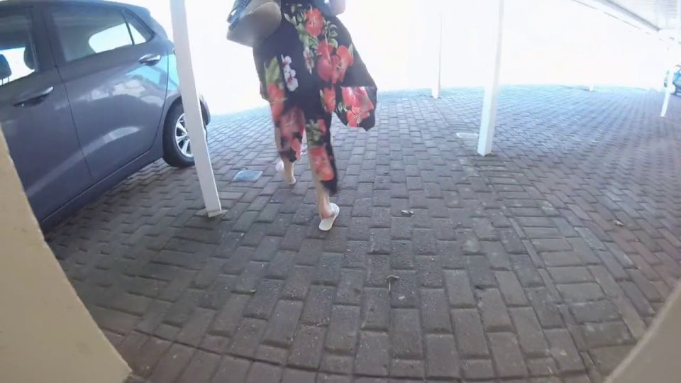 Sam's sitting relaxing and over looking the ocean while she milks her slave under her flat flipflops. She makes him cum on the dirty soles and then, without cleaning her shoes goes off to the mall to spread his mess all over the place.