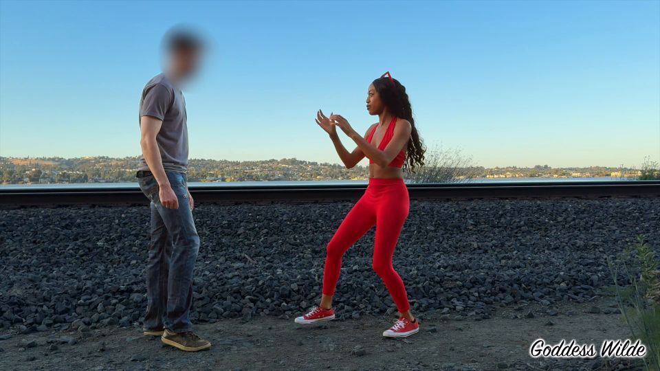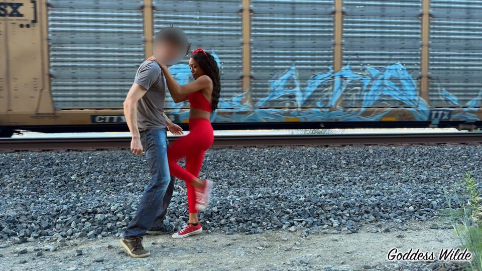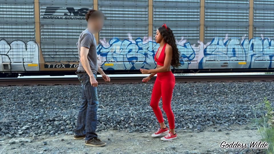 All aboard the pain train! In this brutal public session, Goddess Wilde takes control by the train tracks, unleashing a relentless flurry of hard kicks and punishing knees to Balls4Play’s vulnerable balls. With a train thundering through in the background, the timing couldn’t be more perfect. Each blow lands like a locomotive of agony. Watch as Balls4Play struggles to stay standing while Goddess Wilde delivers ballbusting with no mercy and no shame. The express doesn’t stop until his balls are wrecked.