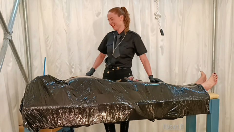 This clip has been heavily discounted because it has a couple of spots where the focus changes for a few seconds. It's simply too good to miss!Madam M has chosen her pet today to carry out some experiments. His predicament is evident, wrapped head to toe and gagged with just a straw to breathe through. His usual chastity cage was replaced along with a spiked ball stretcher. Clearly, submission is assured regardless of any will that may have remained.A selection of implements has been prepared: a harsh steel rule, a biting dragon's tail, a Kinel or pain stick, a Lochgelly tawse, and a delightful oversized wooden spoon, to name a few. Madam stalks her prey, humiliating him and working over his body with fast, hard blows before splitting the wrap to add the first set of spikes.His cries and moans are muffled but evident; his breathing is laboured as he fights his bonds. A pointless but amusing act, his very breath controlled at the will of Madam M.The punishment continues, stretched further, and many more spikes are added, digging ever deeper in his cock and balls. Madam M continues to experiment, his arms, legs, feet, and torso proving easy targets as each implement is used. The addition of Madam M's boot on his spiked and stretched genitalia provides an entertaining sound!The end may not be in sight, but his existence finally has purpose: to entertain Madam M with his eternal pain and frustration!All my Clips - HomeBallbusting clips:Ballbusting BalletBoots Versus BallsBallbusted boot boyJudicial BallbustingBoundless Ballbusting BlowsBye Bye BallsPunishment clips:Drivers Dragon DisciplineGuess The Implement GamesSavage Slingshot ShotsTepid Tea TormentBound and BandedSavage Stables StompingSavage Caning LessonsPurity of the CaneCuffed caned and croppedCaning ConundrumCaning Highs Balls TiedFeel the wrath of my Dragons tailSpanking, strapping and caning the sweet spot!Delectable Detention CaningBruising Bondage BastinadoCBT Cruel Brutal TormentInexorably Bound BastinadoFeet Clips:Breathe Me In Part 1 Intense Workout Sweaty Trainers Foot FetishBreathe Me In Part 2 Sweaty Sock Bare foot Fetish Intense WorkoutMorning Routine Butler Service with foot worship and massageTasty Aromatic TrainersExtreme Foot Gagging AnnihilationBoots clips:Lick my dirty knee high Pleaser boots cleanBoot boys banquetA Humbling Hunters HumiliationBastinado Bands and BindingsHumiliation Clips:Sadistic Soaping SentenceAmuse Me Boy, cum eating, crushed by Arollo bootsThe Stable Boys Wedgie and SwirlyHuman Punch Bag BeatdownReprobates Ratchet WedgieWinched Wedgie DestructionMilitary Prisoner BeastingSissy/feminization:Sissy training lessonsSissy Spanking SentenceSounding Clips:Extreme Sounding Size ChallengeTrampling Clips:Riding Boot Boy PunishedBoot Licking Boys TrampledHigh-heeled Hard TramplingTrample Table Time Booted to BarefootEncouraged BiLocked